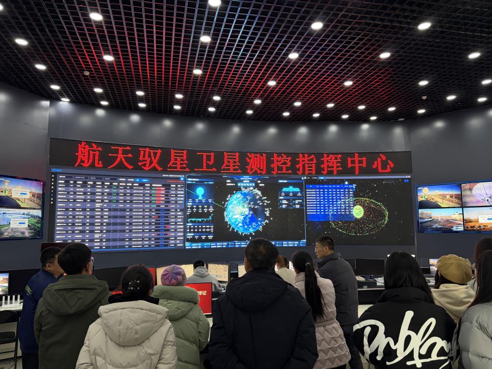随后,调研团队来到航天驭星卫星测控指挥中心。该中心作为国内领先的商业卫星测运控服务提供商,具备全球布局的测控站网与一站式卫星管理能力。在工作人员的专业讲解下,师生们近距离观摩了卫星实时测控系统、数据接收与处理平台,了解卫星在遥感、通信、物联网等领域的广泛应用。师生们对航天数据从接收到应用的完整链路表现出浓厚兴趣,并就数据商业化运营、项目管理模式等问题与技术人员展开交流。