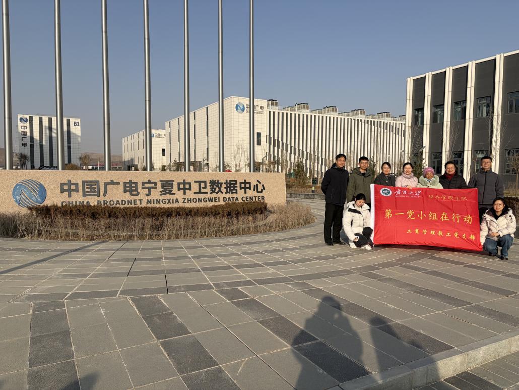 为深入贯彻国家数字经济发展战略,充分落实“强国行”专项行动计划的总体目标,强化党建引领在人才培养与产教融合中的核心作用,在学院党总支统筹安排部署下,在中卫市数据局和中卫校区前沿交叉学院周学勤副院长精心安排下,工商管理教工党支部党员老师、工商管理专业和数字经济专业研究生们于2025年12月11日开展了一场以“数字赋能·智见未来”为主题的调研实践活动。本次活动聚焦数字技术与产业融合前沿,在中卫市数据局迟磊科长的带领下,组织师生走进中卫云展馆、航天驭星卫星测控指挥中心、中国广电-宁夏中卫数据中心及中交智谷(宁夏中卫)产业园,通过实地参观与现场教学,深入了解数字技术在航天、通信、智慧建造等领域的创新应用,着力推动党组织活动与访企拓岗、产业需求深度融合,探索党建引领下校企协同育人新路径。