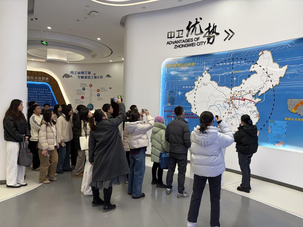 宁夏中卫市作为国家“东数西算”工程八大枢纽节点之一(宁夏枢纽)的核心承载地,近年来依托其独特的地理、气候和能源优势,深度融入国家战略,成为西部算力保障基地和绿色数字产业发展的重要支点。师生首先到达宁夏大学中卫校区,经过短暂休整,抵达中卫云展馆,馆内融合航天、云计算、大数据等主题展区,通过互动体验、模型展示与科普讲解,生动呈现科技与日常生活的紧密联系。师生感受到数字技术在城市治理、民生服务等方面的赋能作用,进一步理解了数字经济的社会价值与技术逻辑。